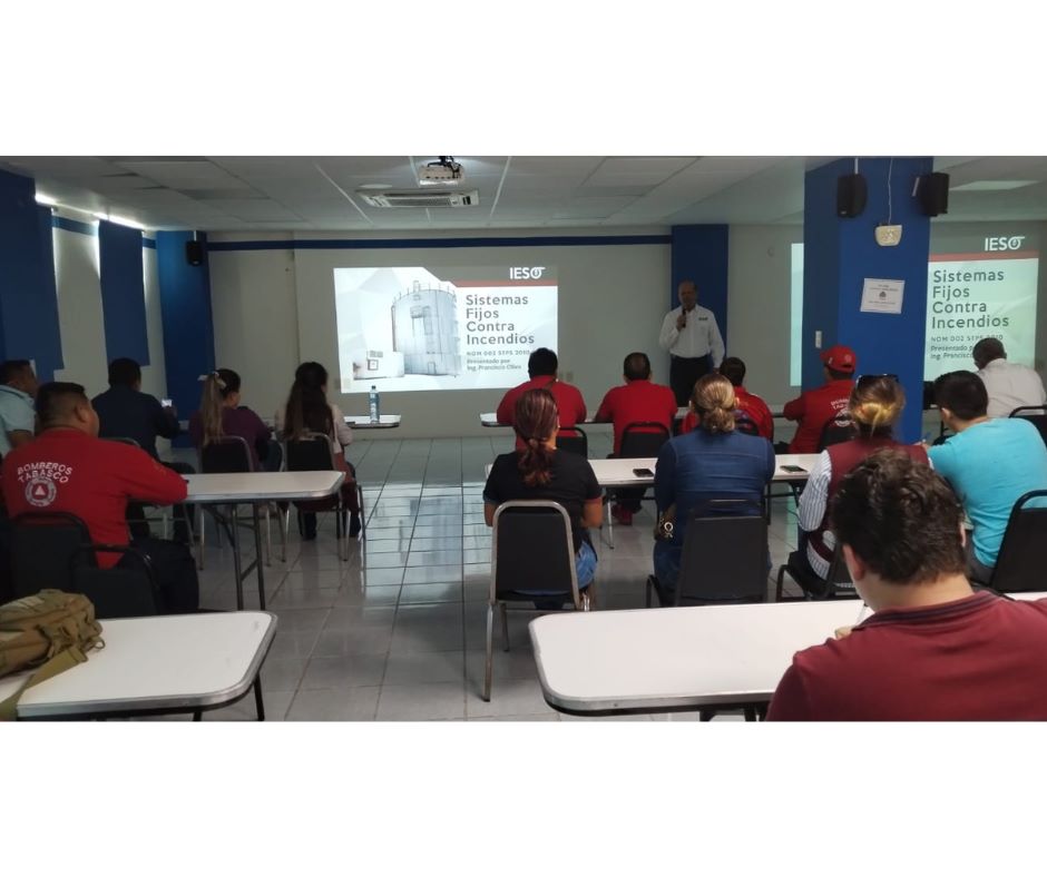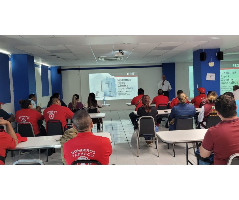 El 25 de noviembre del presente año se llevó a cabo el primer día del curso Sistema Fijos Contra Incendios NOM 002 STPS 2010 NFPA 11, 13, 14, 16, 20, 22, 25 Y 30 en conjunto con Protección Civil Estatal y Municipal del Estado de Tabasco, impartido por el ingeniero Francisco Oliva Moros fundador de IESO.